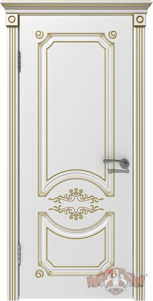 Межкомнатная дверь Милана Белая эмаль, патина золото глухая