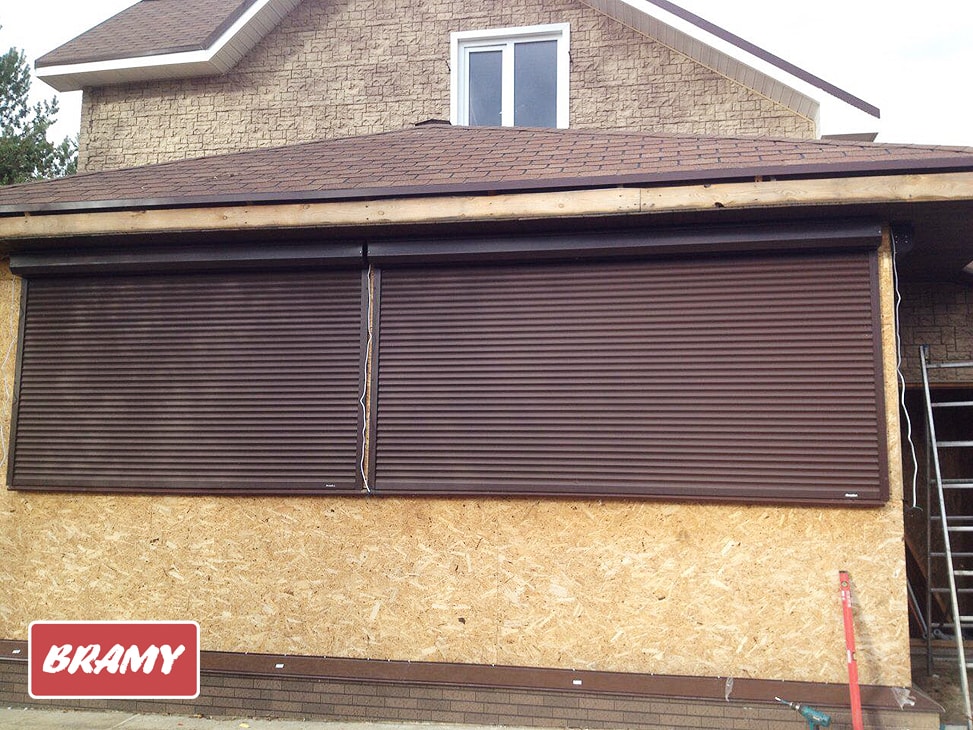 Стандартная конструкция роллет включает в себя секционное полотно, защитный короб и направляющие шины. Все эти элементы подлежат декоративной покраске. Обычно для них подбирается какой-нибудь один оттенок, соответствующий цветовому оформлению фасада. В таком случае рольставни не выделяются на фоне стены и проема, и гармонично вписываются в любой экстерьер.