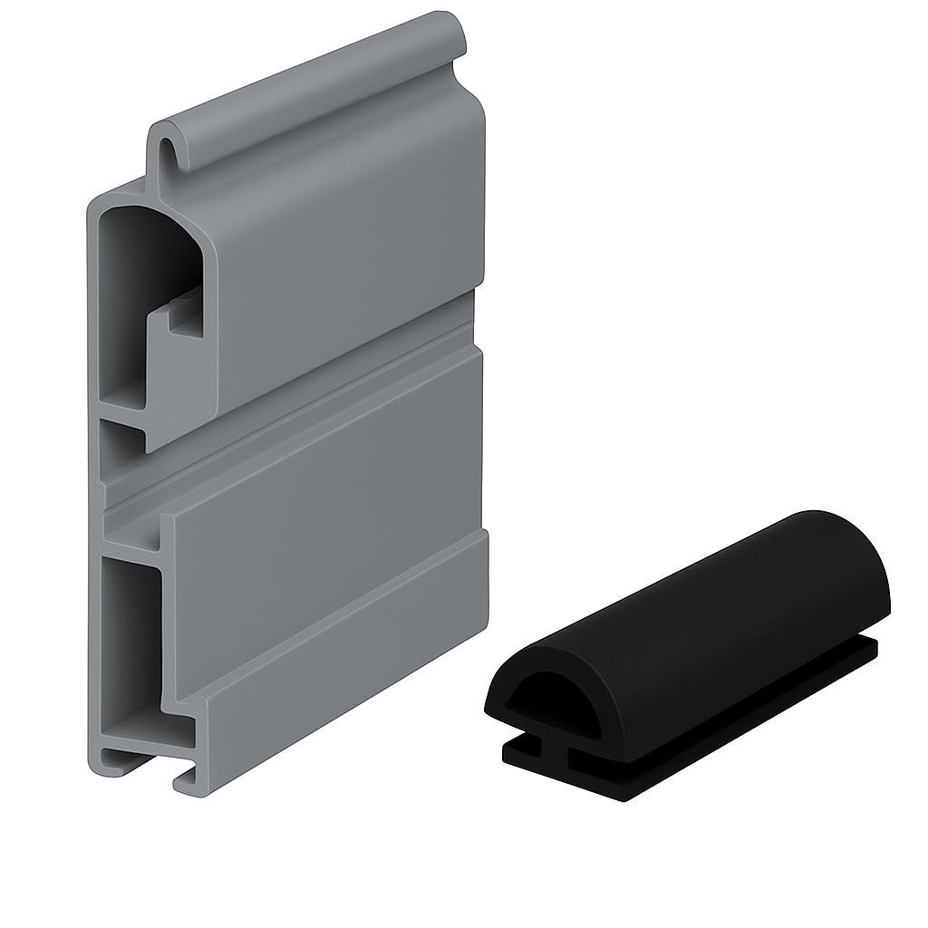 Фасадные витрины и офисные входные группы, складские и производственные проёмы, гаражные секции частного сектора, периметральные проходные. В зонах с частыми циклами и повышенными требованиями к аккуратности закрытия профиль с вставкой помогает удерживать стабильный контур полотна и снижать нагрузку на сопряжения.