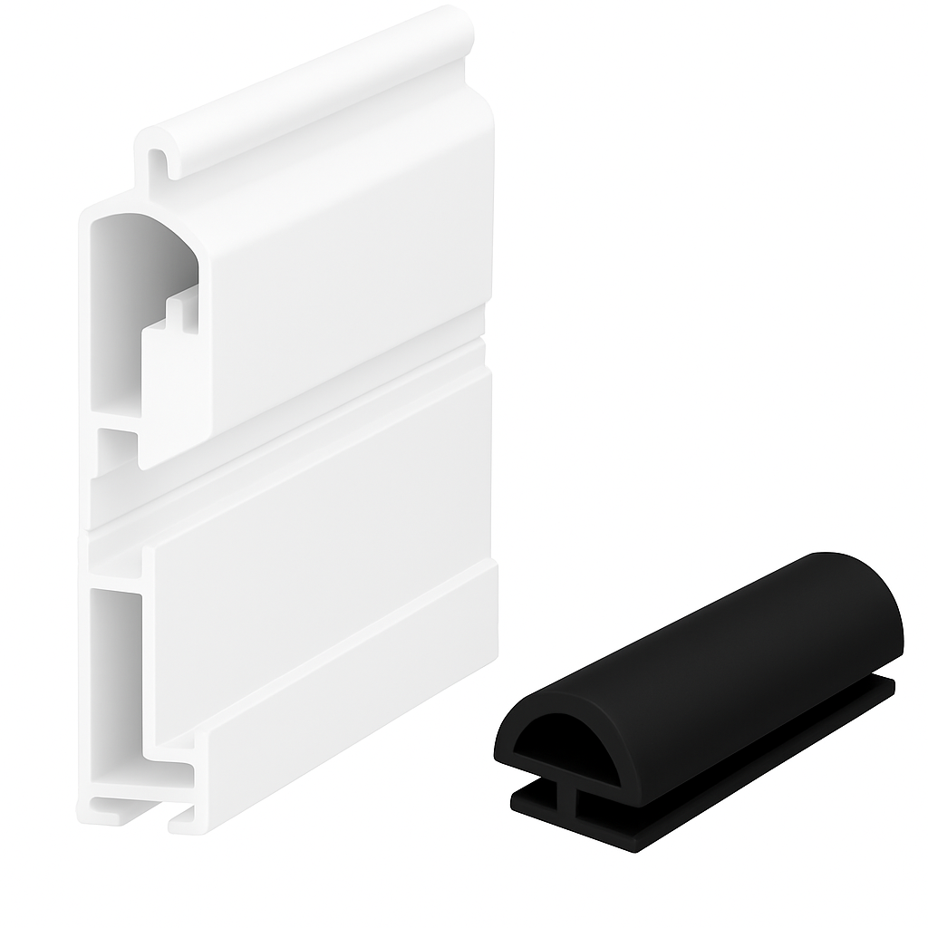 Фасадные витрины и офисные входные группы, складские и производственные проёмы, гаражные секции частного сектора, периметральные проходные. В зонах с частыми циклами и повышенными требованиями к аккуратности закрытия профиль с вставкой помогает удерживать стабильный контур полотна и снижать нагрузку на сопряжения.