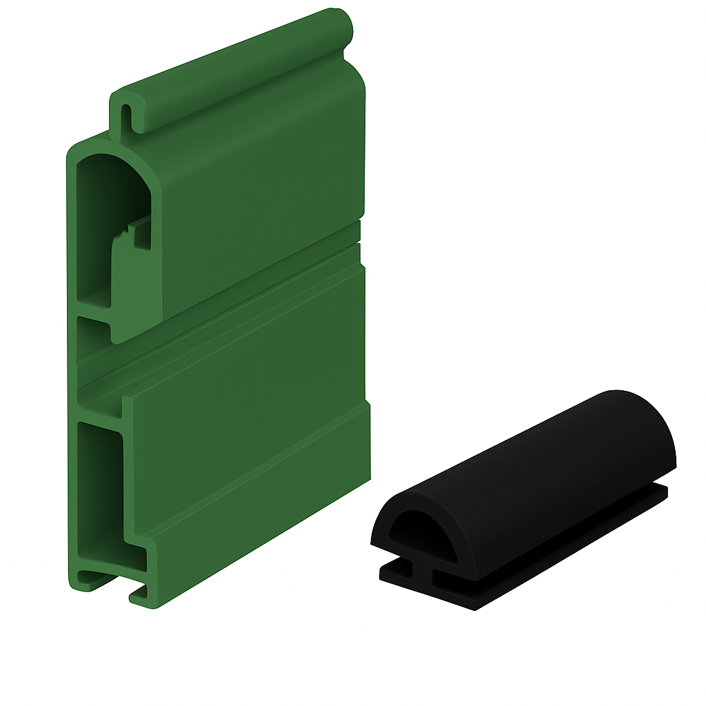 Фасадные витрины и офисные входные группы, складские и производственные проёмы, гаражные секции частного сектора, периметральные проходные. В зонах с частыми циклами и повышенными требованиями к аккуратности закрытия профиль с вставкой помогает удерживать стабильный контур полотна и снижать нагрузку на сопряжения.