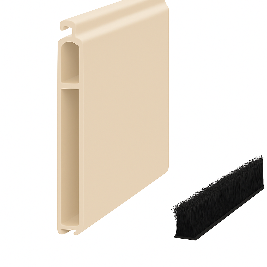 За счёт щеточной вставки ESU8x60BE дополнительно улучшает уплотнение нижней кромки, снижая продувание и микровибрации, а также защищает кромку от мелкого мусора и абразива. Визуально профиль формирует ровную линию низа, что важно для витрин и фасадов с повышенными требованиями к аккуратности внешнего вида.