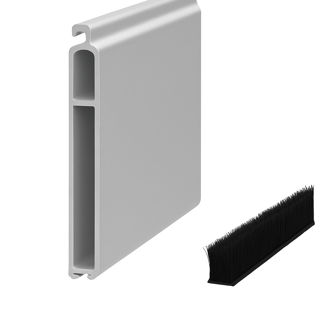 За счёт щеточной вставки ESU8x60BE дополнительно улучшает уплотнение нижней кромки, снижая продувание и микровибрации, а также защищает кромку от мелкого мусора и абразива. Визуально профиль формирует ровную линию низа, что важно для витрин и фасадов с повышенными требованиями к аккуратности внешнего вида.