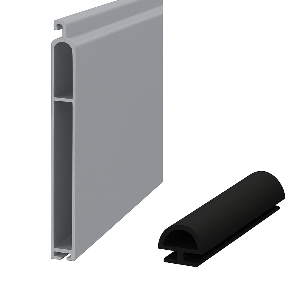 Концевой профиль ALUTECH ESU8x60IE — универсальный элемент нижней кромки роллетного полотна, выполненный из экструдированного алюминия и укомплектованный заводской вставкой IS19. Его задача — сохранить жёсткость и геометрию края, обеспечить чистое прилегание при закрывании и повысить комфорт ежедневной эксплуатации. Вставка смягчает контакт с порогом, сглаживает микронеровности и уменьшает слышимые вибрации: полотно работает тише, а линия низа выглядит аккуратно даже при интенсивных циклах.