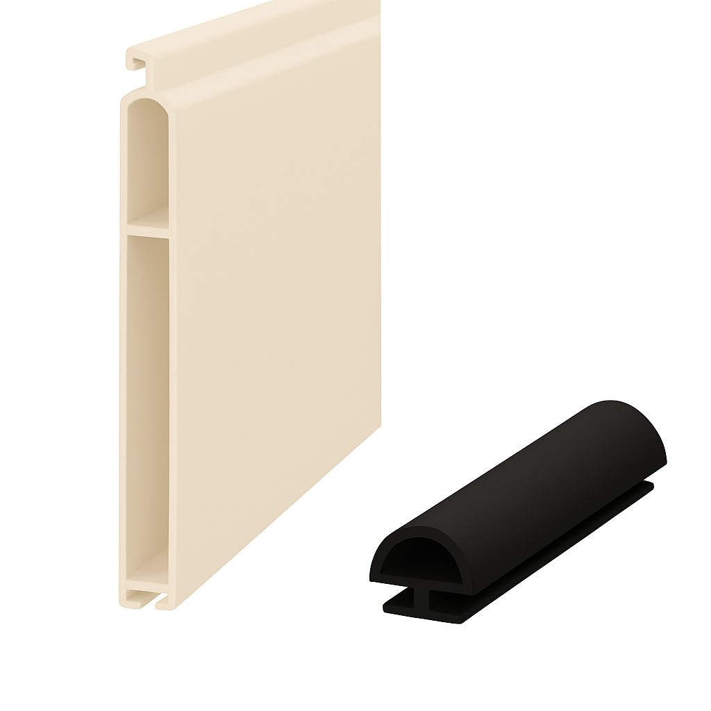Концевой профиль ALUTECH ESU8x60IE — универсальный элемент нижней кромки роллетного полотна, выполненный из экструдированного алюминия и укомплектованный заводской вставкой IS19. Его задача — сохранить жёсткость и геометрию края, обеспечить чистое прилегание при закрывании и повысить комфорт ежедневной эксплуатации. Вставка смягчает контакт с порогом, сглаживает микронеровности и уменьшает слышимые вибрации: полотно работает тише, а линия низа выглядит аккуратно даже при интенсивных циклах.