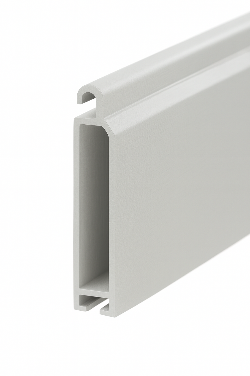 Такой подбор обеспечивает согласованный внешний шаг полотна и корректную посадку замковых соединений — без «ступенек» по фасаду и с предсказуемым закрыванием. Решение органично работает на витринах и фасадах с повышенными требованиями к внешнему виду, а также в дверных и гаражных проёмах, перегородках и технологических зонах.