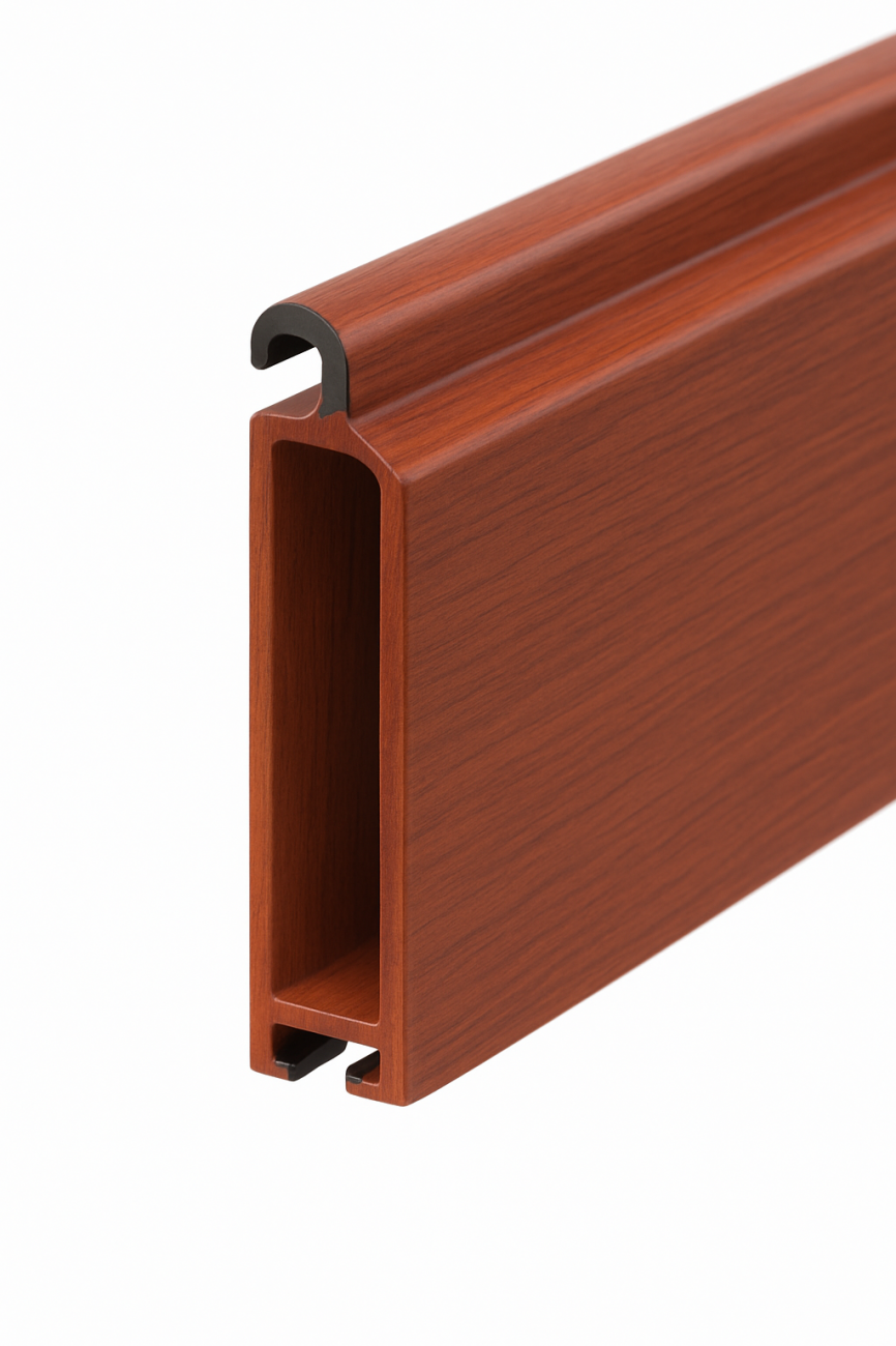 Такой подбор обеспечивает согласованный внешний шаг полотна и корректную посадку замковых соединений — без «ступенек» по фасаду и с предсказуемым закрыванием. Решение органично работает на витринах и фасадах с повышенными требованиями к внешнему виду, а также в дверных и гаражных проёмах, перегородках и технологических зонах.