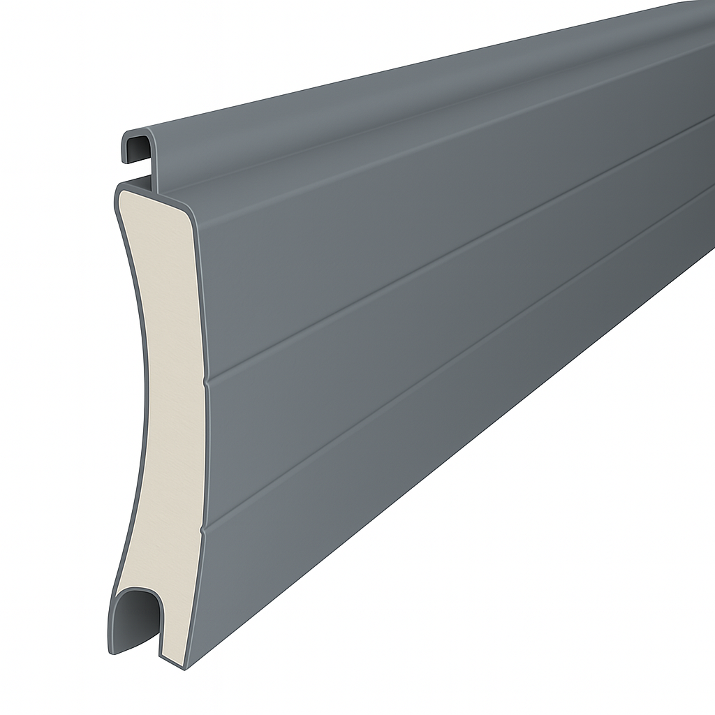 Профиль AG 77 представляет собой надёжное и энергоэффективное решение для защиты очень широких проёмов, крупных витрин, торговых рядов, выставочных павильонов и гаражей без отопления. Благодаря заполнению полиуретановой пеной и двойному лакокрасочному покрытию PUR/PA, этот профиль обеспечивает отличную тепло- и звукоизоляцию, высокую прочность и устойчивость к износу при минимальном прогибе полотна до ширины 7 м.