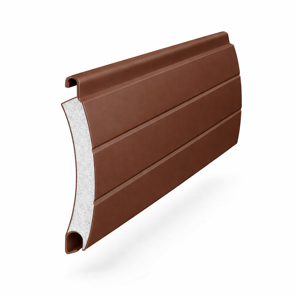 ALUTECH AR/41N - пенонаполненный алюминиевый профиль роликовой прокатки для сборки полотна рольставней. Исполнение N - неперфорированная ламель, когда нужен полностью закрытый проем без световых просветов. Данная позиция на сайте - цвет 102 коричневый.