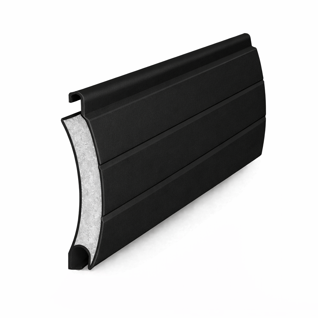 ALUTECH AR/41N - пенонаполненный алюминиевый профиль роликовой прокатки для сборки полотна рольставней. Исполнение N - неперфорированная ламель, когда нужен полностью закрытый проем без световых просветов. Данная позиция на сайте - цвет 110 черный.
