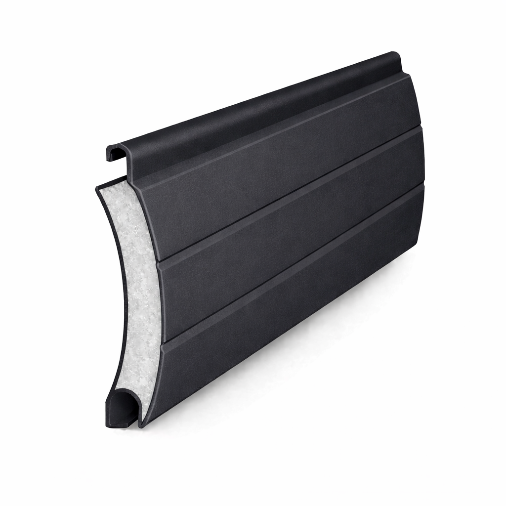 ALUTECH AR/41N - пенонаполненный алюминиевый профиль роликовой прокатки для сборки полотна рольставней. Исполнение N - неперфорированная ламель, когда нужен полностью закрытый проем без световых просветов. Данная позиция на сайте - цвет 113 антрацит.