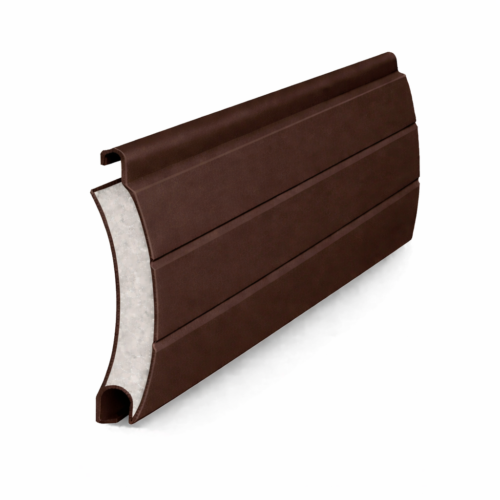 ALUTECH AR/41N - пенонаполненный алюминиевый профиль роликовой прокатки для сборки полотна рольставней. Исполнение N - неперфорированная ламель, когда нужен полностью закрытый проем без световых просветов. Данная позиция на сайте - цвет 122 темно-коричневый.