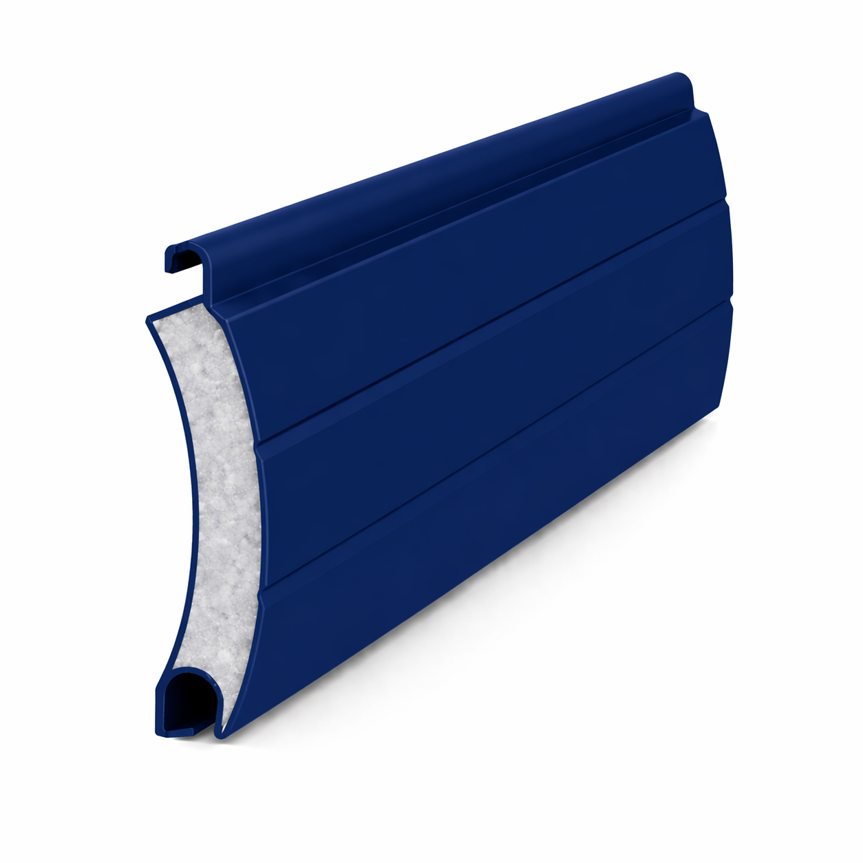 ALUTECH AR/41N - пенонаполненный алюминиевый профиль роликовой прокатки для сборки полотна рольставней. Исполнение N - неперфорированная ламель, когда нужен полностью закрытый проем без световых просветов. Данная позиция на сайте - цвет 126 темно-синий.