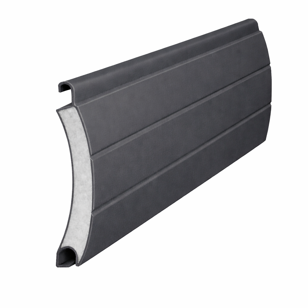 ALUTECH AR/555N - профиль роллетный роликовой прокатки с пенным заполнением для сборки полотна рольставней. Исполнение N - неперфорированное, для полностью закрытого проема без световых просветов.