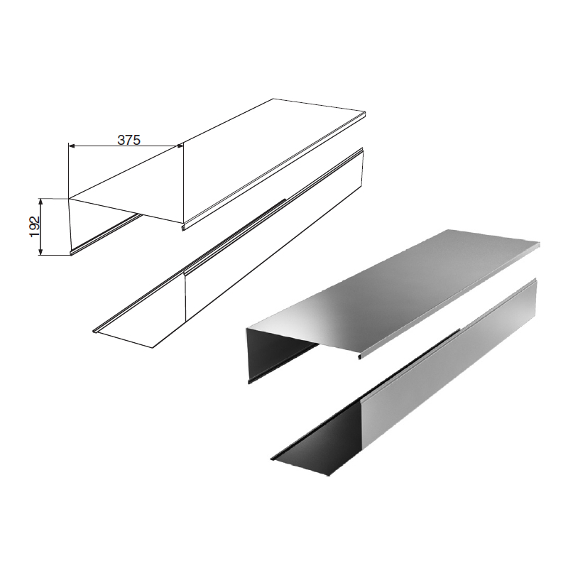Короб защитный используются для защиты приводного механизма и автоматики рольставен и рольворот от внешних атмосферных и механических воздействий. Он состоит из профилированных алюминиевой ленты и задней части. В зависимости от ширины используемых ламелей и высоты закрываемого проема рассчитывается его величина.