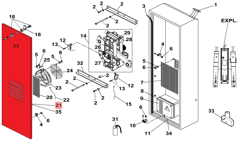 7270655 дверца корпуса RAL 2004 для шлагбаумов серий 620 SR, 640 (ЗИП 21)
