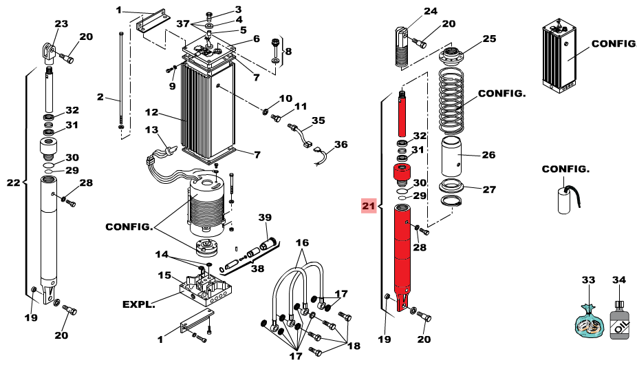 725204 гидроцилиндр под пружину для шлагбаума серии 640 (ЗИП 21)