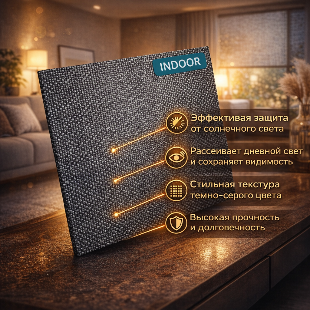 Ткань для рулонных штор СКРИН OTD 3% подходит для жилых и коммерческих помещений, где требуется практичная солнцезащита и аккуратное оформление окон: квартира, дом, офис, кабинет, переговорная. В итоге вы получаете системный материал AMIGO для рулонных штор, который выбирают за понятную логику применения и удобство повторяемой комплектации по коду.