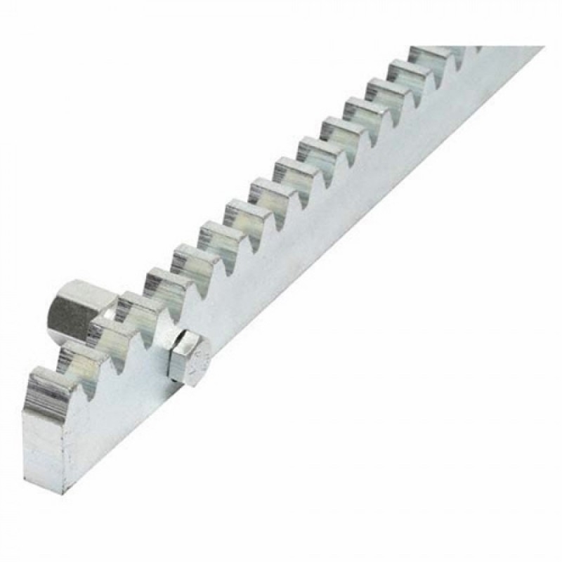 Зубчатая рейка предназначена для перемещения сдвижных ворот. Рейки стыкуются между собой и закрепляются на воротах. Длина рейки составляет один метр, что позволяет точно подобрать нужную длину зубчатого полотна для любой ширины проема. Благодаря мощным зубьям рейка выдерживает интенсивную эксплуатацию и длительный срок службы. Кроме того рейка имеет антикоррозионное покрытие, что в течение всего срока службы сохраняет ее прочность и эстетичный внешний вид.