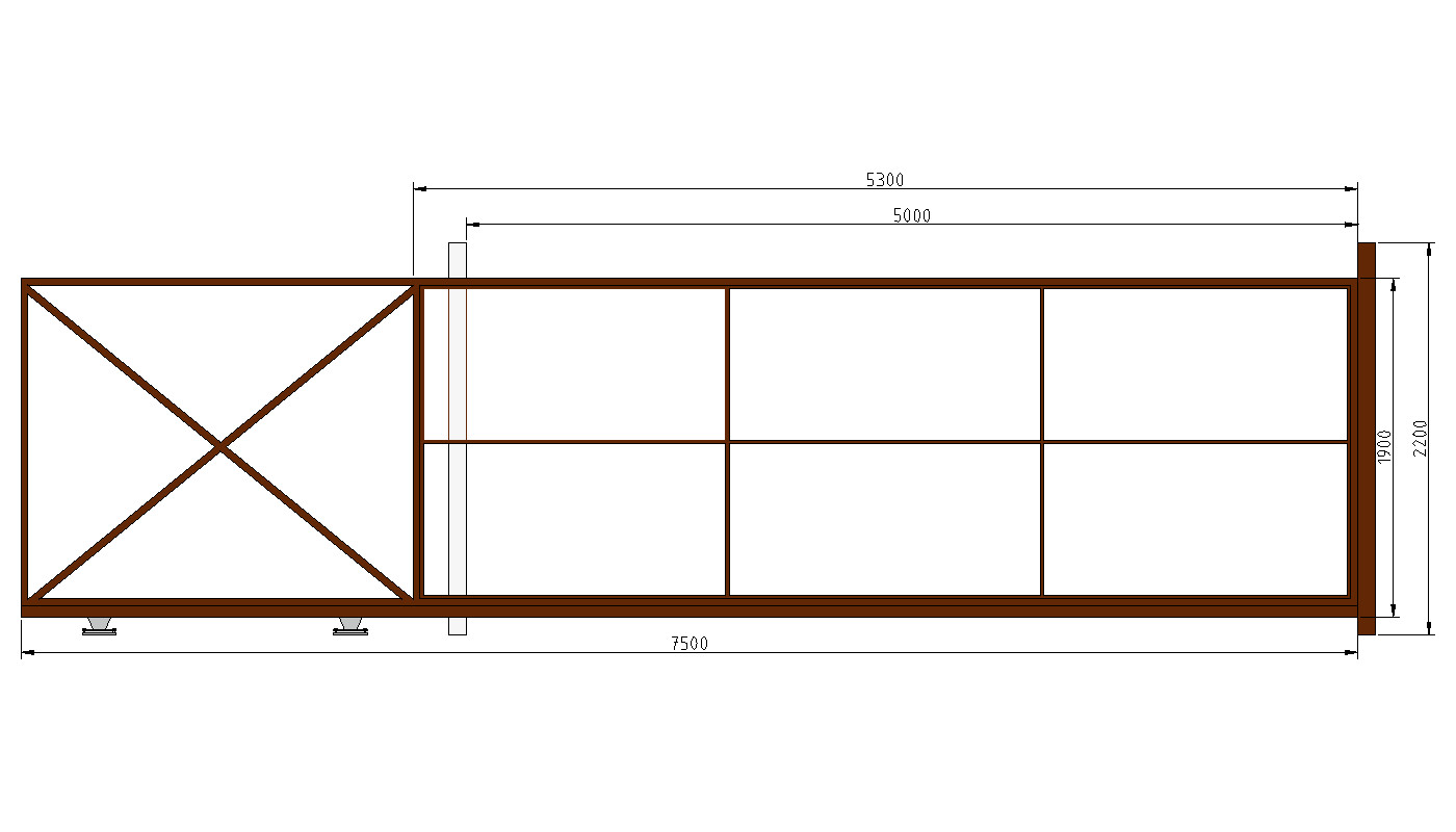 - Каркас откатных ворот, на проем 5000х2000 мм. — 1 шт. (направление открытия: любое)