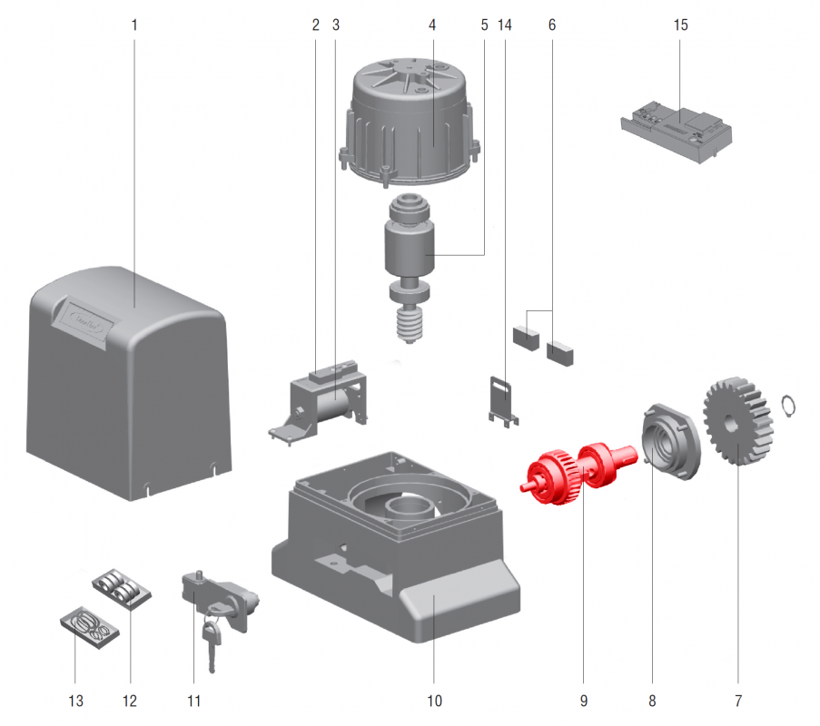 DOORHAN DHSL011 рабочий вал двигателя с шестеренкой и подшипниками в сборе для привода откатных ворот серии SLIDING-1300, SLIDING-2100