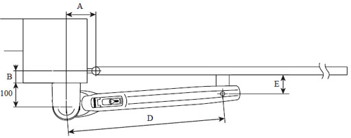 | Модель | А (мм.) | В (мм.) | D (мм.) | α макс. (°) | E (мм.) | |