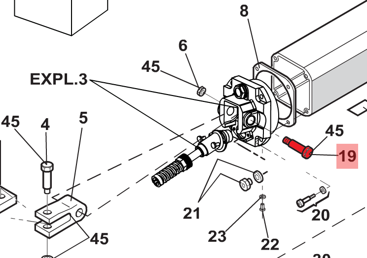7182175 длинный болт для приводов распашных ворот серий 400, 402, 422, S450H (ЗИП 19, ЗИП 23, ЗИП 17)